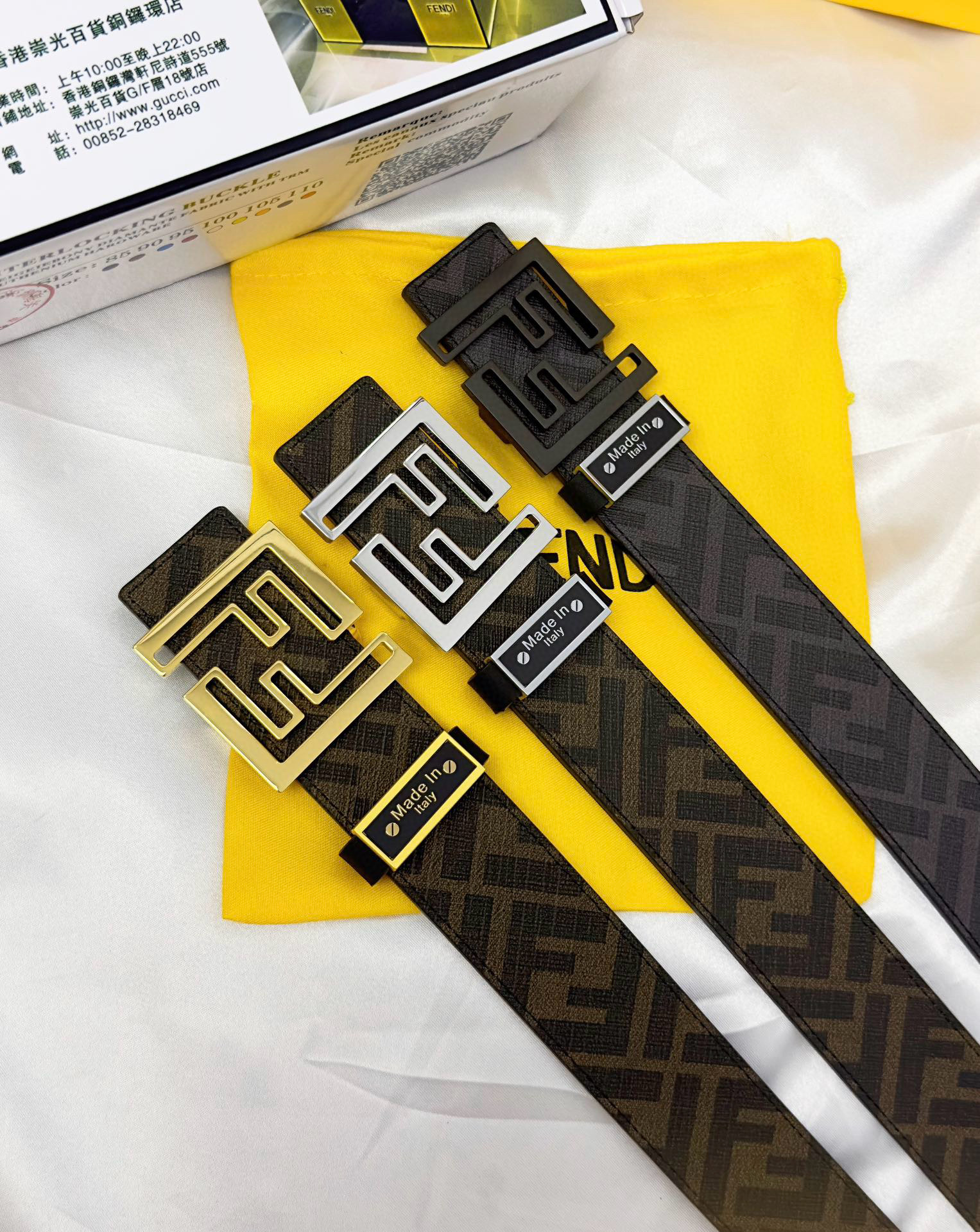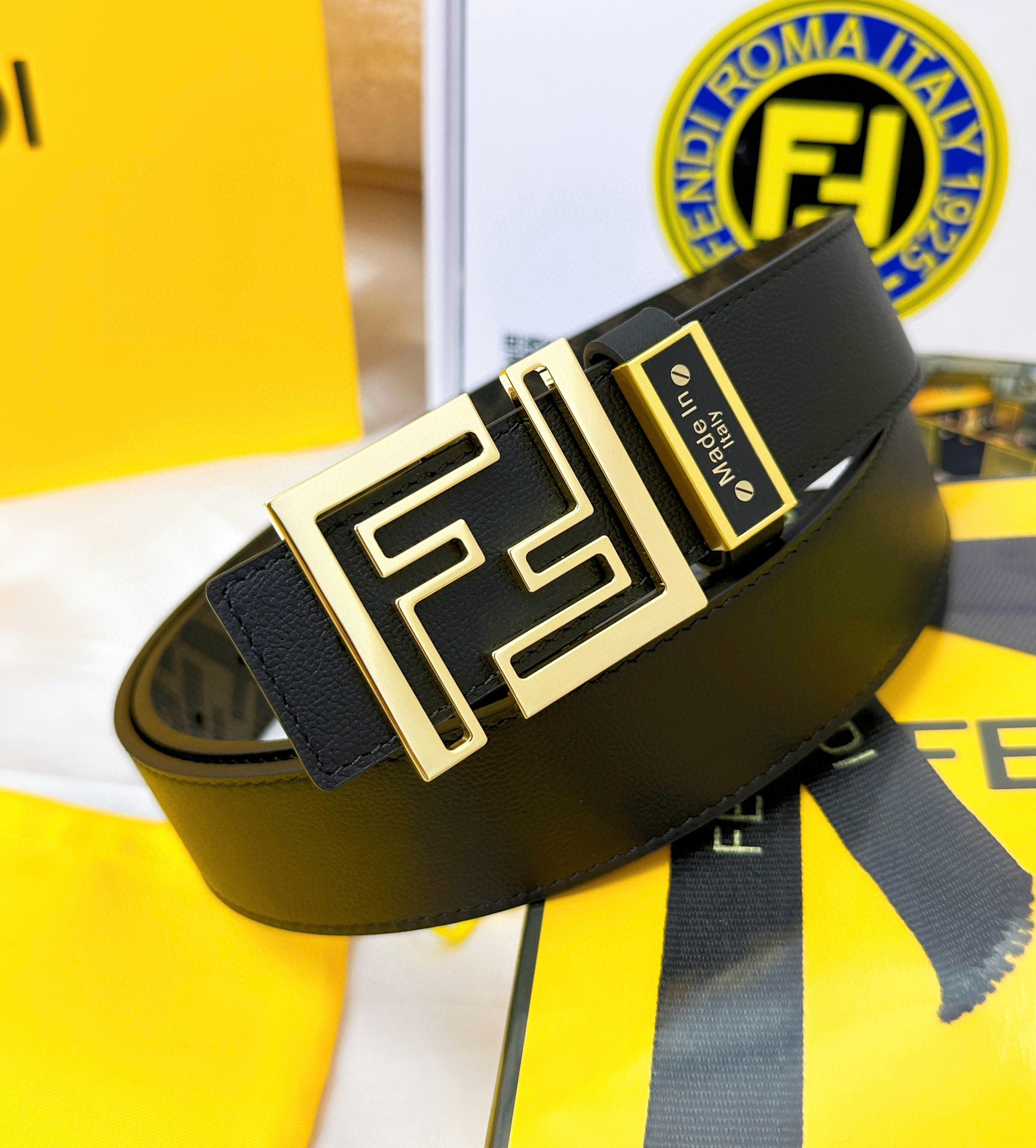 This reversible belt offers versatility, allowing you to switch styles effortlessly. Each purchase includes a full set of gift box packaging, making it an ideal choice for personal use or gifting. Enjoy a luxurious addition to your wardrobe with the Fendi cowhide belt.