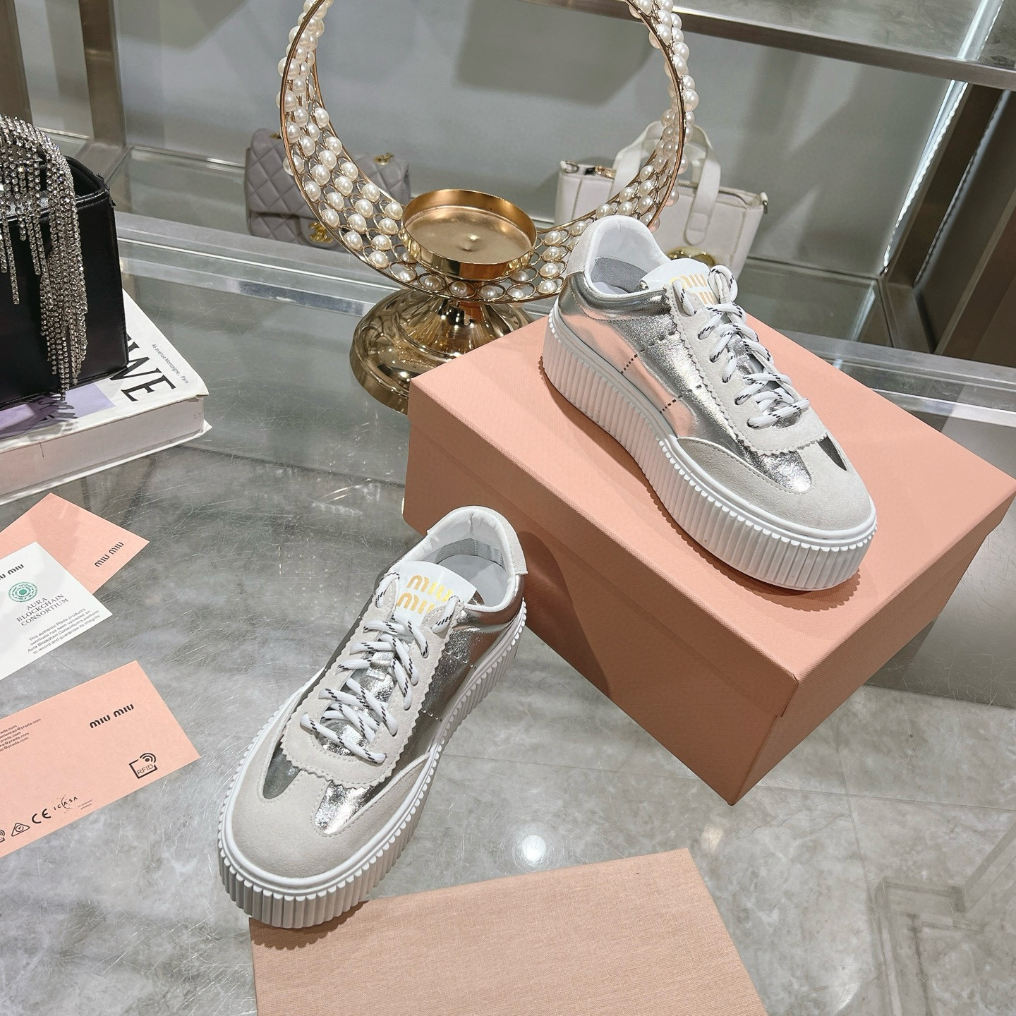 Fashion simple senior casual with the foot is very light and comfortable this year’s main fashion simple senior casual with the foot is very comfortable, the annual must enter! The original purchase and development of goods miu home the latest explosive avant-garde bold design Miu logo style into the simple lines of this leather sneakers. Chic logos adorn the tongue and back of the shoe with a vintage design.