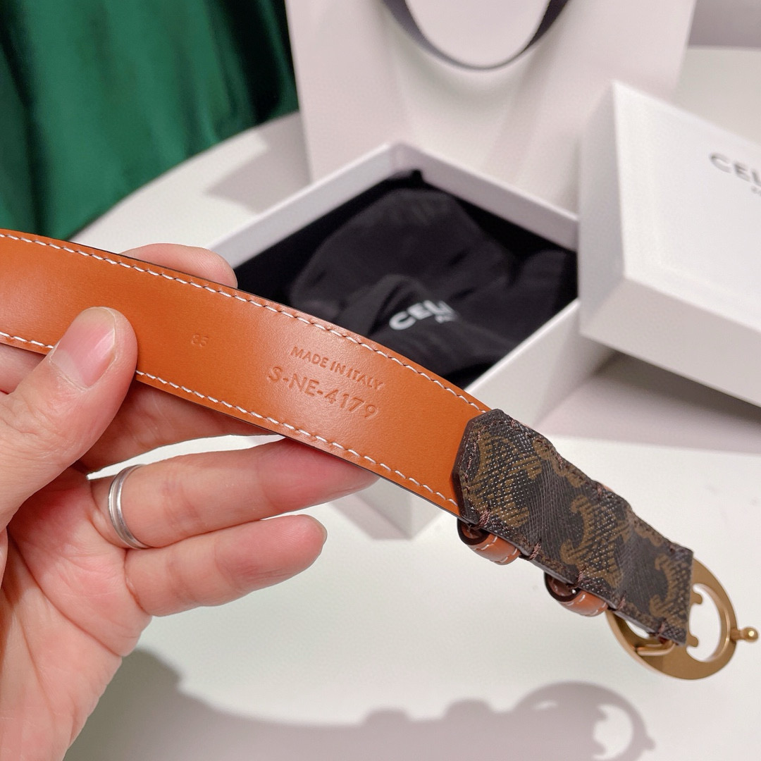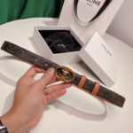 The Celine belt is a perfect accessory to elevate any outfit. Crafted from the brand’s signature cowhide, this elegant and soft belt effortlessly adds a sophisticated yet casual atmosphere to your look.